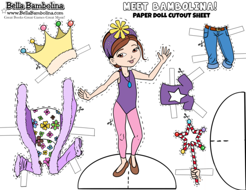 Have fun cutting out this Bambolina Paper Doll! For best result use card stock paper and support cutout doll with tape or glued on pop stick.